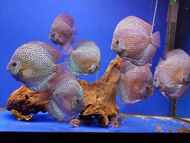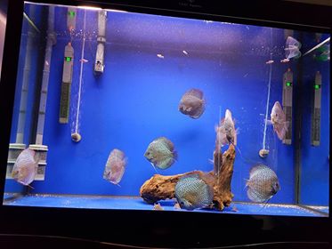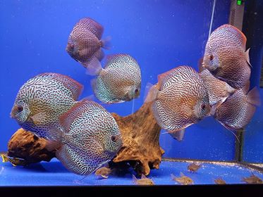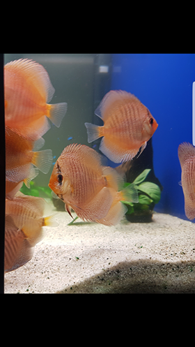 I brought my 10 leopards at 8cm in December 2016 from Devotedly Discus, as you can see they are doing great , they are the most friendly discus I have kept before always begging for food. I could not be happier with them , or the first class service I received from Devotedly Discus. I keep them in HMA filtered water change it twice per week , and feed them 3 times daily.